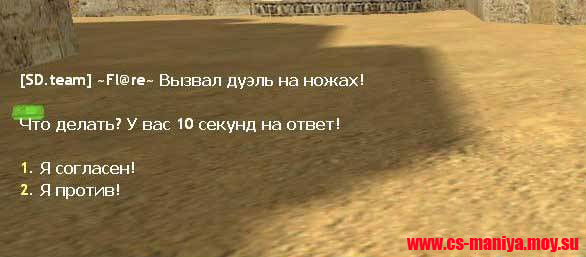 На данный момент вы просматриваете краткое описание файла Knife Duel, данный файл принадлежит категории Плагины amxx. Материал Knife Duel опубликован 19.03.2012. Помимо данного материала у нас еще много других файлов схожих по меткам в разделе Cs. Копирования материала с сайта строго Запрещено