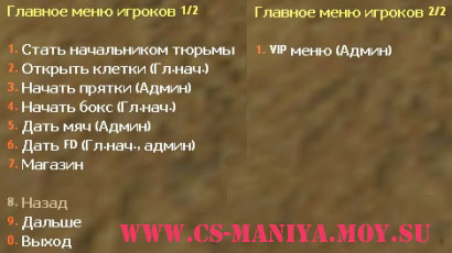 На данный момент вы просматриваете краткое описание файла Jail_menu, данный файл принадлежит категории Плагины amxx. Материал Jail_menu опубликован 16.03.2012. Помимо данного материала у нас еще много других файлов схожих по меткам в разделе Cs. Копирования материала с сайта строго Запрещено