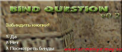 На данный момент вы просматриваете краткое описание файла Bind Question v0.2, данный файл принадлежит категории Плагины amxx. Материал Bind Question v0.2 опубликован 29.03.2012. Помимо данного материала у нас еще много других файлов схожих по меткам в разделе Cs. Копирования материала с сайта строго Запрещено