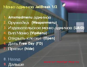 На данный момент вы просматриваете краткое описание файла Меню админа JailBreak, данный файл принадлежит категории Плагины amxx. Материал Меню админа JailBreak опубликован 29.03.2012. Помимо данного материала у нас еще много других файлов схожих по меткам в разделе Cs. Копирования материала с сайта строго Запрещено